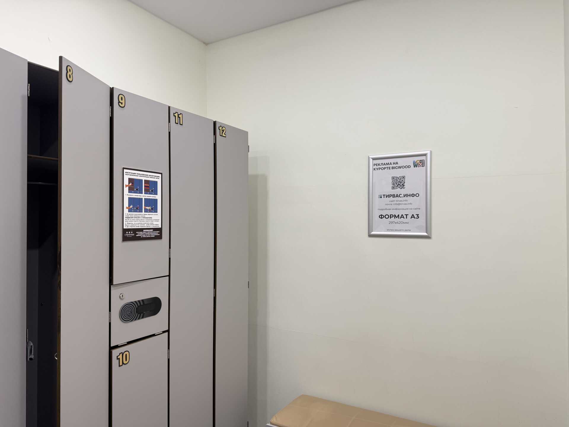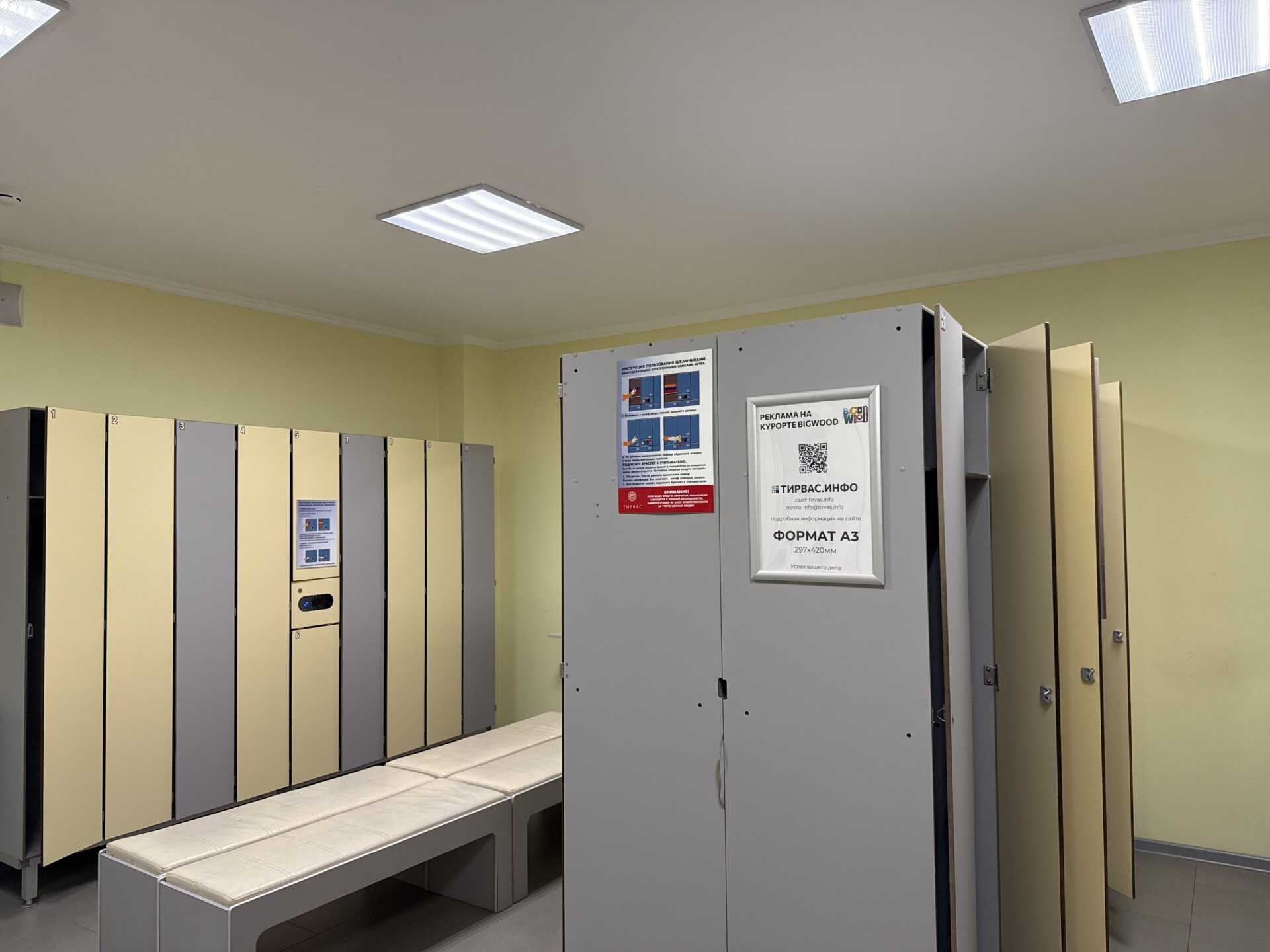 КЛИК-РАМКА (А3) + ТЕЙБЛ — ТЕНТ(А5) — СОК «ТИРВАС», бассейн: торцы шкафов в раздевалке 2 шт., стойка адм.