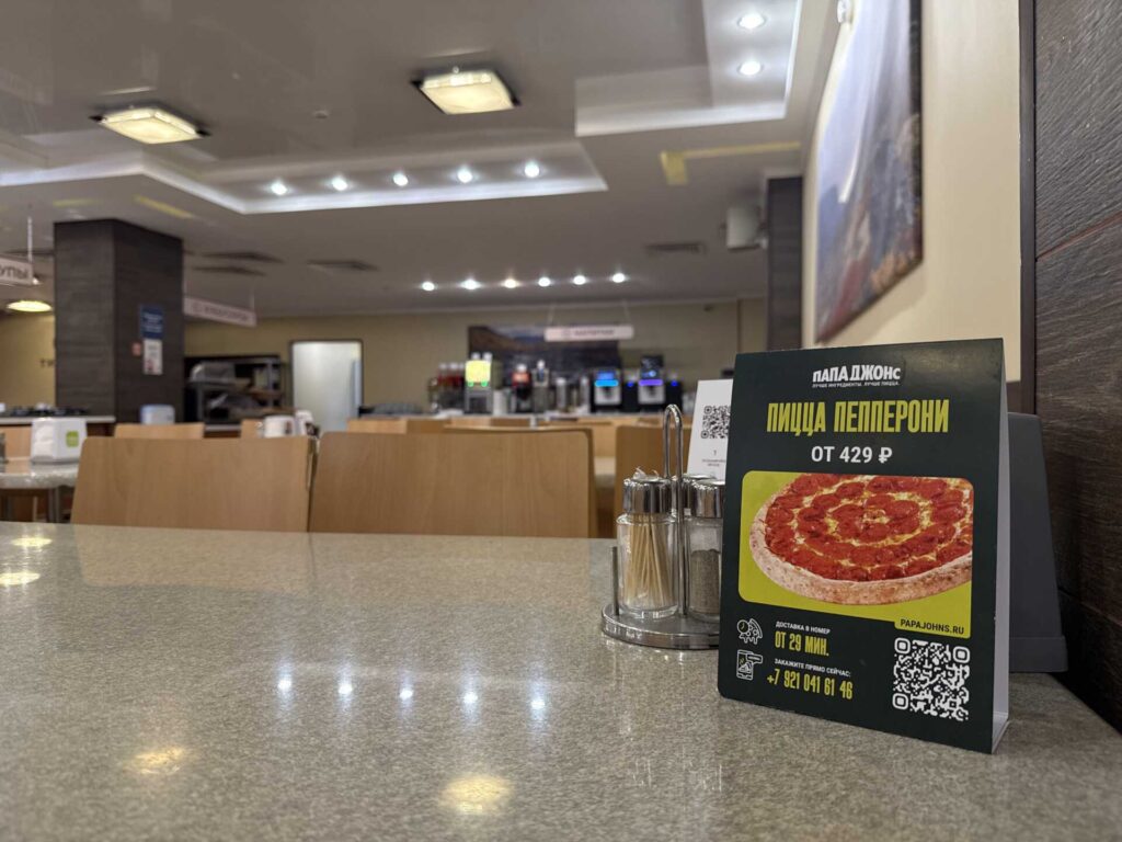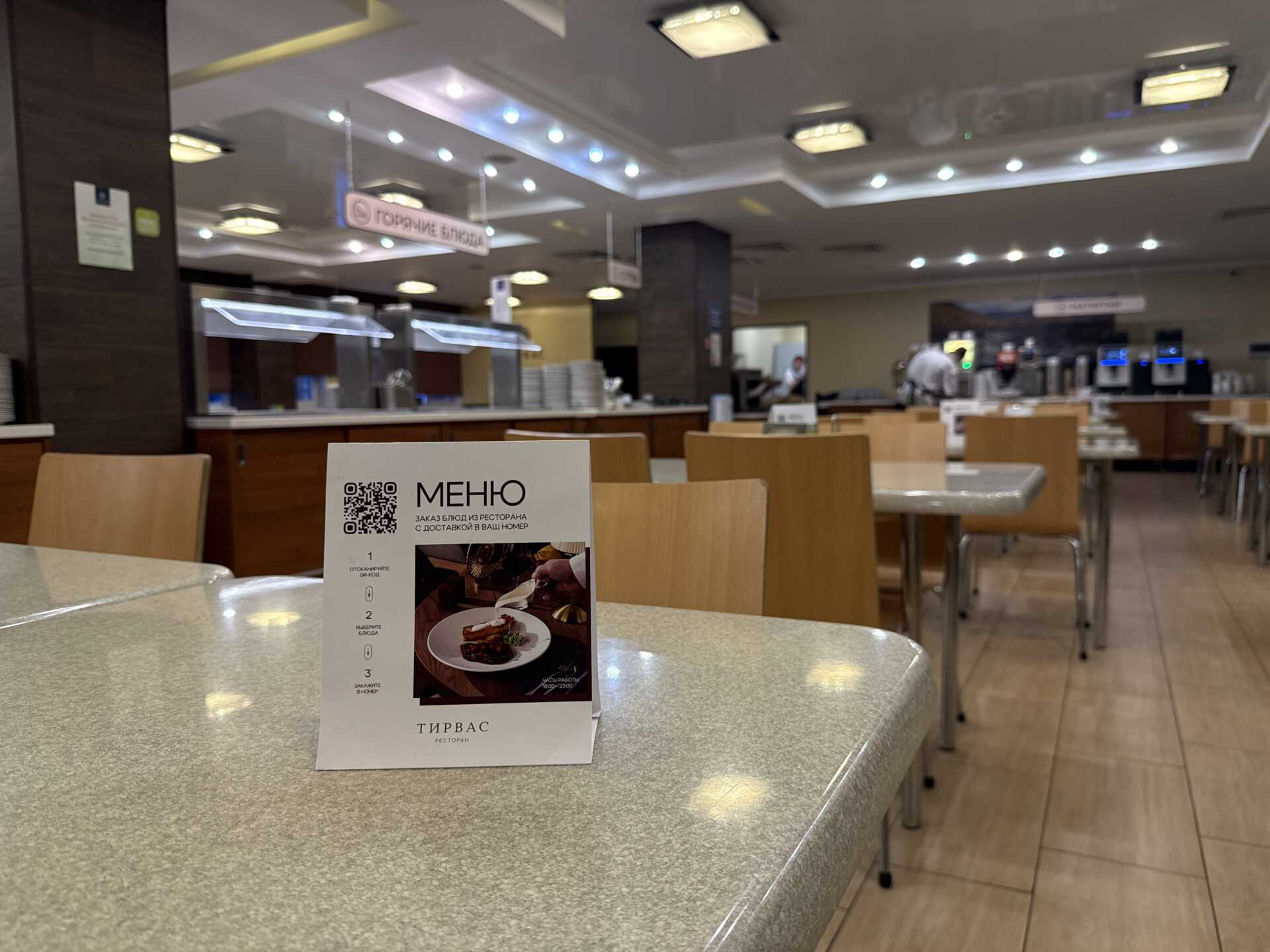КАРТОННЫЙ ТРЕУГОЛЬНИК – СОК «ТИРВАС», столы на шведской линии раздачи